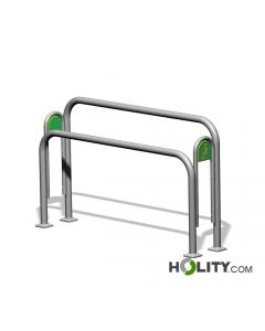 Banco isquiático de acero galvanizado. Dimensiones totales: L. 100 x P. 20 x h. 80 cm. Anclaje: alambre al suelo.