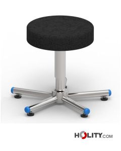 Taburete de acero inoxidable AISI 304 satinado para uso quirúrgico. 5 pies autoclavables y base de 5 radios. Altura regulable de 500 a 630 mm.