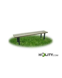 Banco sin respaldo para mobiliario urbano y espacios públicos, fabricado en metal y con asiento de lamas de madera de pino nórdico. Fabricado en Italia.
