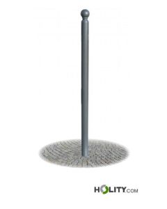 Poste de delimitación con estructura tubular de acero. Altura sobre el suelo: 988 mm. Fijación: a rejuntar.