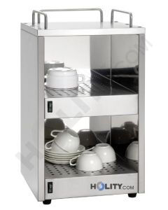 Calentador de tazas profesional en acero inoxidable para 72 tazas, 32x38x56 cm. Diseño compacto de dos niveles con estante superior integrado para los platillos.
