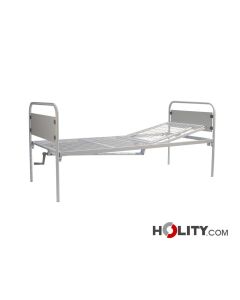 Cama de hospitalización para residencias con cabecero y reposapiernas manuales. Dimensiones: L. 204 x P. 90 x h. 93 cm. Red desmontable en 2 partes.