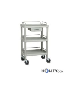 Carro de servicio para medicaciones de acero inoxidable con cajón de material plástico.