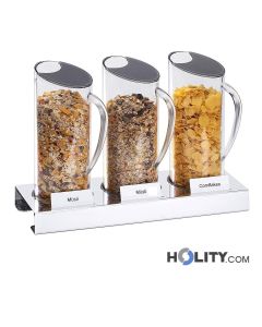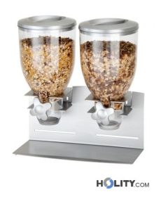 Nuestros dispensadores de cereales harán tu día más fácil desde la mañana. Los dispensadores de cereales disponibles en Holity son de diferentes tipos y tamaños, podrás elegir la opción que mejor se adapte a cómo quieres configurar la mesa de bufé para el desayuno en tu establecimiento. Podrías optar por dispensadores de cereales múltiples que permiten la distribución de diferentes tipos de productos simultáneamente. Alternativamente, podrías optar por soluciones con cuerpo individual si tienes la necesidad de proponer un alimento específico. Nuestros dispensadores de alimentos no son solo adecuados para cereales, sino también para otros tipos de alimentos secos y no secos; por ejemplo, son perfectos también para la distribución de yogures (¡ideales para servir junto con los cereales!).
