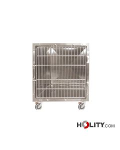 Jaula hospitalaria con base fija en acero inoxidable Aisi 304. Dimensiones: L.60,5 x P.72 x H.145 cm. 1 plaza.