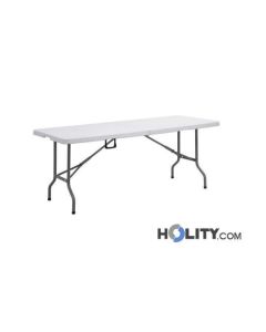 Mesa de catering rectangular plegable con tablero y patas plegables disponible en tres tamaños diferentes. Altura: 74 cm.