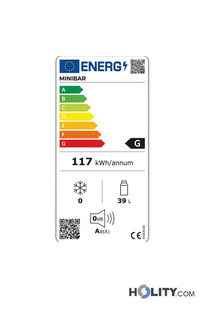 Minibar con tecnología Peltier silenciosa (0 dB). Capacidad: 40 lt. Dimensiones: An 44,1 x P 43 x Al 61 cm.