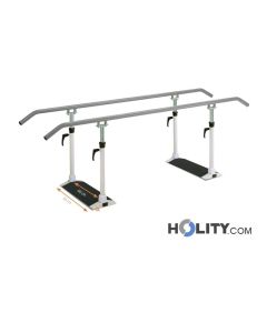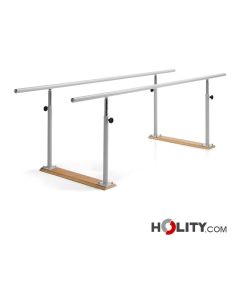 Paralela para caminar con base de 4 metros de largo. Pasamanos regulables en altura y anchura.