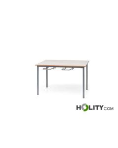 Mesa multiusos con tapa robusta, patas de acero Ø 40. Dimensiones: L 140 x P 80 x H 76 cm.