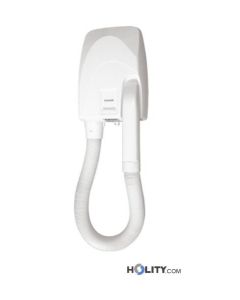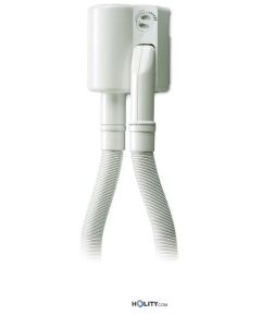 Secador de pelo en tubo ABS para habitación de hotel con fijación a pared. Dimensiones: L.220 x P.112 x H.580 mm.