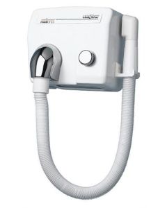 Secador de pelo profesional de pared con tubo. Equipado con termostato y enchufe para afeitadora. Resistente al agua