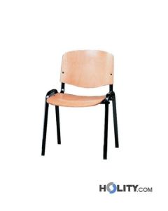 314,60 € IVA incl.Silla con paneles de haya, apilable para ocupar poco espacio. Acabado en barniz natural. Dimensiones: L.53 x P.57 x h.80 cm.