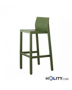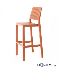 Taburete bar con respaldo. Material: tecnopolímero. Dimensiones: L.47,5 x P.47,5 x Altura. 97,5 cm.